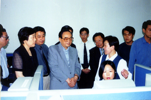 二〇〇一年五月二十六日9:10—10:40 中央書記處書記、中宣部部長(zhǎng)丁關(guān)根在省委副書記吳愛(ài)英、省宣傳部長(zhǎng)王秉聲、市委書記張惠來(lái)、市委副書記張旭升等陪同下一行二十人視察96111熱線。
