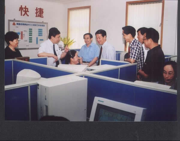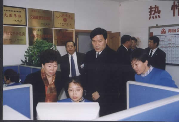 二〇〇三年八月二十日 中共中央政治局委員、書記處書記、中宣部部長(zhǎng)劉云山、副部長(zhǎng)胡振民在山東省委書記張高麗、省委常委、青島市委書記杜世成等領(lǐng)導(dǎo)陪同下視察96111熱線。