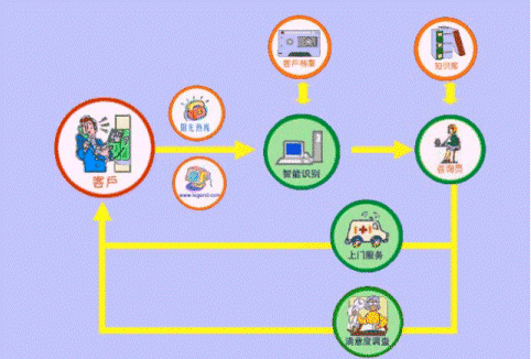 售后技術(shù)咨詢及報(bào)修:用戶購機(jī)之后,同樣可以通過電話或者網(wǎng)絡(luò)進(jìn)入呼叫中心系統(tǒng),系統(tǒng)會(huì)通過用戶檔案庫得到用戶的詳細(xì)信息并為他尋找合適的咨詢員,咨詢員會(huì)依據(jù)共享的知識(shí)庫為用戶解決問題,如果用戶的機(jī)器需要上門服務(wù)。咨詢員會(huì)通過網(wǎng)絡(luò)查詢?nèi)珖⻊?wù)渠道的工程師和備件情況,并安排工程師迅速上門為用戶服務(wù)。維修完成一天后,系統(tǒng)會(huì)自動(dòng)產(chǎn)生電話呼出,由咨詢員直接詢問用戶對(duì)服務(wù)過程的滿意程度,以便改進(jìn)我們的工作。