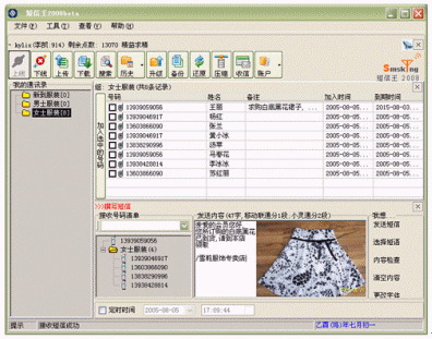 "短信王"的彩信模塊操作起來非常方便。以某服裝專賣店為例,通過使用"短信王"的企業(yè)彩信功能,它可以向廣大會員顧客發(fā)送最新的服裝款式信息,而這個信息除了文本介紹外,同時還附帶清晰的圖片。會員足不出戶就可以在第一時間看到最新的上架服裝,并對自己喜歡的款式回復(fù)短信下單。會員享受了超值服務(wù)、節(jié)省了時間,對于服裝店來說,也獲得了一種高效的經(jīng)營方法并加深了與客戶之間的關(guān)系。