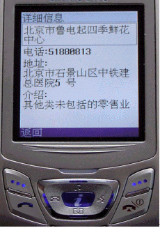 用戶只要在手機(jī)的"空中搜"中輸入相關(guān)企業(yè)名稱的一部分信息,例如:新鄉(xiāng) 第二百貨公司,或者輸入產(chǎn)品服務(wù)的名稱,例如:快遞,餐飲,就會搜索到符合其要求的一組企業(yè)信息,少則數(shù)條,多達(dá)數(shù)十條,點(diǎn)擊任意一個,都會出現(xiàn)詳細(xì)的相關(guān)信息,信息中包括企業(yè)的電話、地址、企業(yè)介紹等。這樣的一次搜索需要的費(fèi)用是由搜索產(chǎn)生的數(shù)據(jù)流量費(fèi),費(fèi)用是一分錢,時間是幾秒,信息服務(wù)的提供完全免費(fèi)。