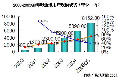 2000-2005第三季度即時(shí)通訊用戶規(guī),F(xiàn)狀圖