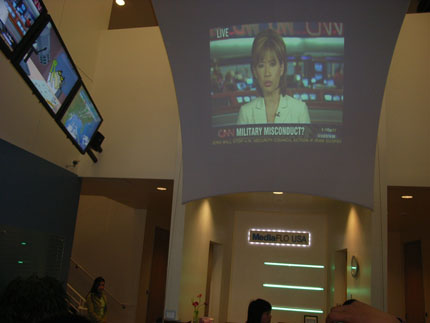 MediaFLO USA的前臺(tái)大廳布滿屏幕,說(shuō)明它有媒體血緣。