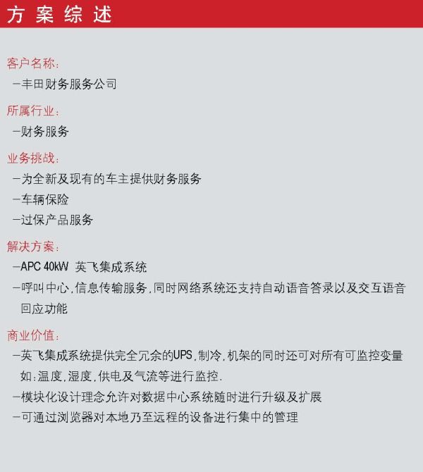 豐田財務(wù)服務(wù)公司通過APC系統(tǒng)架構(gòu)保護其VoIP系統(tǒng)