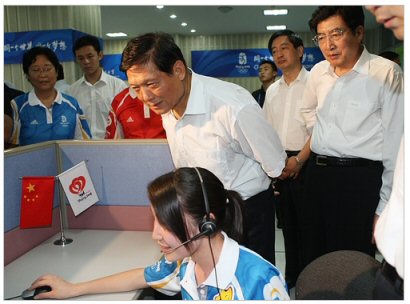 7月7日訊 今天上午,北京市委書記、北京奧組委主席劉淇,北京市市長、北京奧組委執(zhí)行主席郭金龍一行到北京奧運會觀眾呼叫中心視察。自7月1日--9月25日,奧運觀眾呼叫中心將為國內外觀眾提供觀賽信息咨詢,并陸續(xù)開通多個語種服務,其中,方言也納入了語音服務的范圍。
