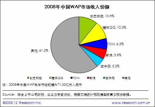 與此同時,傳統(tǒng)互聯(lián)網(wǎng)廠商在WAP市場占據(jù)份額逐步提升。2008年運營商通過奧運事件營銷較好的培養(yǎng)了用戶的移動互聯(lián)網(wǎng)使用習(xí)慣,而騰訊、新浪等廠商能夠較好的將其在傳統(tǒng)互聯(lián)網(wǎng)領(lǐng)域的產(chǎn)品、內(nèi)容、品牌資源整合到移動互聯(lián)網(wǎng),在為用戶提供更為便捷、無縫的網(wǎng)絡(luò)服務(wù)的同時延續(xù)其在互聯(lián)網(wǎng)領(lǐng)域的強勢地位。艾瑞咨詢預(yù)計,2009年互聯(lián)網(wǎng)廠商對WAP市場的分流還將持續(xù)加劇。