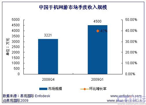 2009年第1季度中國(guó)手機(jī)網(wǎng)游市場(chǎng)規(guī)模為4500萬(wàn)元