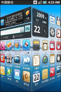 由于OMS是在基于Linux的Andriod系統(tǒng)基礎(chǔ)上,針對中國市場需求以及中國移動的自有業(yè)務(wù)所做的修改,OMS操作系統(tǒng)看上去第一直觀感受仍然是與iPhone界面和T-Mobile推出的第一款A(yù)ndriod手機(jī)“Gphone”界面非常相似。