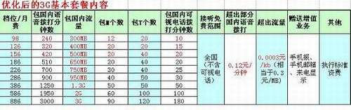 據了解,正式商用資費包含9個等級,從98元-886元不等,取消了試商用期間最高的1686元套餐,新增了98元、126元和156元三項套餐,超出套餐的語音資費也由原來的0.36元-0.24元/分鐘不等,調整為統(tǒng)一的0.12元/分鐘,比之試商用期間的半價資費還要低。