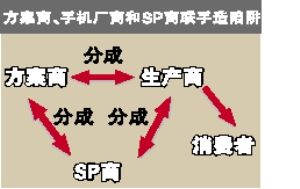 中國(guó)移動(dòng)2007年1月出臺(tái)的《移動(dòng)夢(mèng)網(wǎng)SP合作管理辦法》規(guī)定,禁止SP和終端廠(chǎng)家直接進(jìn)行終端內(nèi)置業(yè)務(wù)的合作。但是,大部分國(guó)產(chǎn)手機(jī)生產(chǎn)環(huán)節(jié)當(dāng)中,都有一個(gè)重要的角色,那就是手機(jī)方案商。方案商主要負(fù)責(zé)提供整套手機(jī)設(shè)計(jì)方案,包括研發(fā)手機(jī)主板、設(shè)計(jì)操作系統(tǒng),他們把帶有操作系統(tǒng)的主板賣(mài)給手機(jī)生產(chǎn)商,生產(chǎn)商再采購(gòu)?fù)鈿、液晶屏等部件組裝成成品手機(jī)。