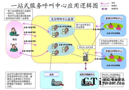 - 依托完善的呼叫中心技術平臺,好醫(yī)生在國內唯一的國家級醫(yī)藥產(chǎn)業(yè)基地——泰州“中國醫(yī)藥城”構建完成了國內首家具有100座席以上處理能力的醫(yī)藥衛(wèi)生領域的專業(yè)化呼叫中心。該呼叫中心企業(yè)具有多址分布、全國組網(wǎng)功能。座席組物理上既可以在北京(好醫(yī)生的呼叫中心總部),也可以在北京以外的任何地區(qū)(好醫(yī)生的呼叫中心分部);通過IP技術,呼叫中心的各路話務統(tǒng)一由北京接入或呼出。