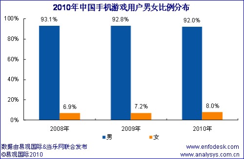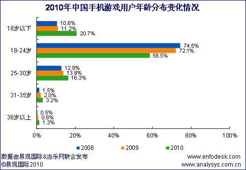 近期易觀國際、當(dāng)樂網(wǎng)聯(lián)合對手機(jī)游戲用戶進(jìn)行調(diào)研,推出《中國手機(jī)游戲用戶研究報告2010》,從中國手機(jī)游戲用戶結(jié)構(gòu)特征和用戶行為方面分析手機(jī)游戲產(chǎn)業(yè)發(fā)展三大空間: