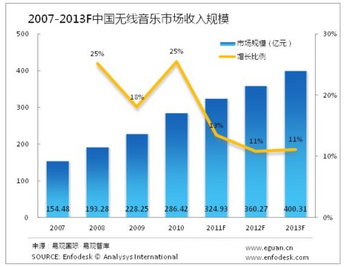 2013年無(wú)線音樂(lè)市場(chǎng)規(guī)模將達(dá)400億元