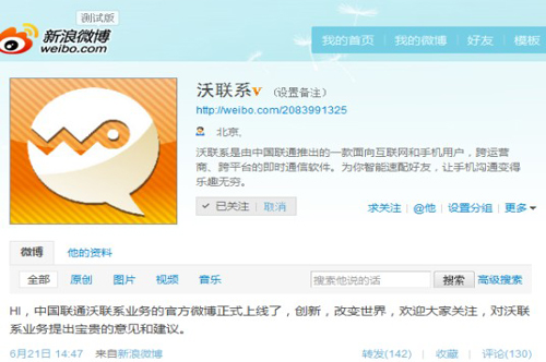 中國聯(lián)通微博透露將推即時(shí)通信軟件“沃聯(lián)系”