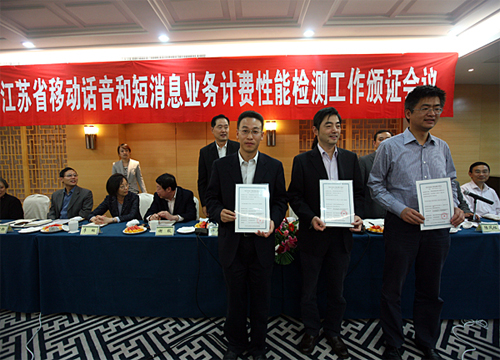 會上,檢測單位公布了移動話音和短消息業(yè)務(wù)計(jì)費(fèi)檢測的相關(guān)標(biāo)準(zhǔn)和本次計(jì)費(fèi)檢測的合格清單。省通信管理局向江蘇電信、江蘇移動、江蘇聯(lián)通共39家地市公司頒發(fā)了移動話音和短消息業(yè)務(wù)計(jì)費(fèi)性能檢測合格證書。