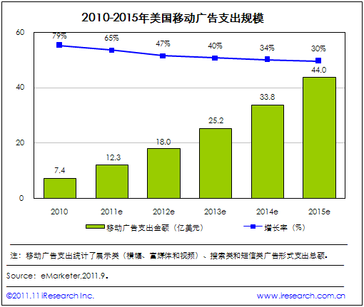 艾瑞:2011年美國移動廣告支出規(guī)模將達12.3億美元
