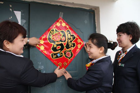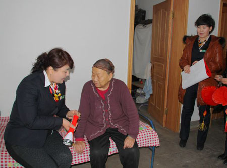 “阿姨,春節(jié)快到了,我們來看看您,前兩天已經(jīng)幫您把電充上了,這次給您帶了個手電,用著它以后到地下室可以照個亮!标犻L阿依古麗向丁阿姨說明來意,還跟丁阿姨試了試,手電是充電式的,不用換電池,丁阿姨挺高興的。臨走時,阿依古麗還在她家門上貼了個大紅的“!弊,祝福老人家新年快樂。