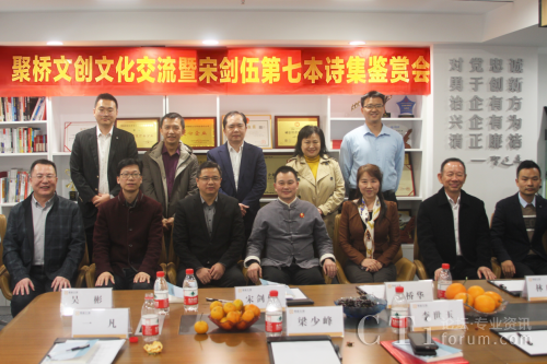 12月28日,聚橋文創(chuàng)文化交流暨宋劍伍第七本詩集鑒賞會在廣州天河召開,本次活動為首屆廣東中華優(yōu)秀傳統(tǒng)文化節(jié)系列活動之一,由廣東省傳統(tǒng)文化促進(jìn)會、廣州聚橋文創(chuàng)、廣州市愛國為民文化信息傳播有限公司聯(lián)合主辦。廣東省文聯(lián)副秘書長、省文藝評論家協(xié)會專職副主席梁少鋒,廣東省傳統(tǒng)文化促進(jìn)會會長李世玉,深圳城投集團(tuán)執(zhí)行總裁安菲佳,廣東省傳統(tǒng)文化促進(jìn)會林啟明、吳彬、一凡、徐波博士,聚橋文創(chuàng)總經(jīng)理、廣東省傳統(tǒng)文化促進(jìn)會常務(wù)理事鄒橋華,青麥源集團(tuán)董事長王錫光,商業(yè)戰(zhàn)略分析師、詩人宋劍伍,廣東金咨貓總經(jīng)理陳錫文等參加本次活動。正皓集團(tuán)董事長潘堅發(fā)來活動祝賀信,并表示集團(tuán)將在2024年和廣東省傳統(tǒng)文化促進(jìn)會及詩人宋劍伍在品牌文化上有更深度的合作。