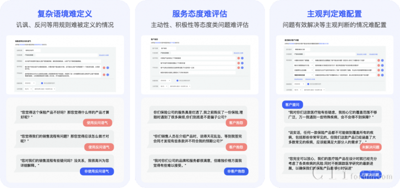 解決了傳統(tǒng)基于關(guān)鍵詞或NLP配置規(guī)則難以窮舉所有違規(guī)內(nèi)容,導(dǎo)致檢測(cè)遺漏的難題,智能質(zhì)檢的配置過(guò)程也更為簡(jiǎn)便,只需簡(jiǎn)單的描述輸入即可完成配置,大大降低了操作難度和成本。相較于人工質(zhì)檢,效率提升幅度超過(guò)1000倍。