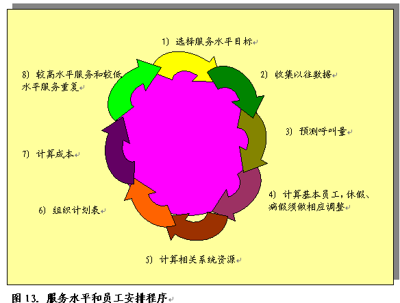 要準(zhǔn)確預(yù)測員工需求量,至少需要四個(gè)月的相關(guān)數(shù)據(jù)。這些數(shù)據(jù)將收錄在自動工作表制訂工具中。圖13舉例說明了呼叫中心可采取的此類步驟。