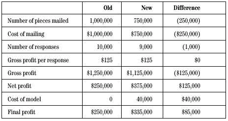 請注意,郵寄的純利潤增加了$125,000,甚至你扣除由于數(shù)據(jù)采集而產(chǎn)生的軟件、硬件即人力資源方面的$40,000,純利潤還增加了$85,000。建模的投入轉(zhuǎn)化成了200%的收益,這遠(yuǎn)遠(yuǎn)超過了BB&CC對這一項(xiàng)目的ROI要求。
