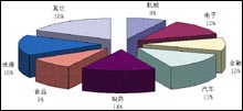 2001年中國CRM軟件市場各行業(yè)銷售額比例圖
