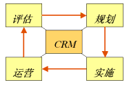如圖所示,CRM的實(shí)施步驟是診斷-規(guī)劃-實(shí)施-評(píng)估的閉環(huán)的過程,保證了"大處著眼、小處入手、迅速見效"。這樣保證了既有長(zhǎng)遠(yuǎn)的規(guī)劃和目標(biāo),又能夠步步為營(yíng),鞏固實(shí)施成果。