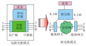圖1 電路交換模式與軟交換模式