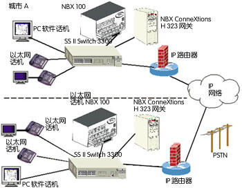 NBX商用話機是基于 SIP的以太網(wǎng)話機,它內(nèi)含兩個標準以太網(wǎng)接口,可與局域網(wǎng)交換機直接連接,同時拖帶一臺 PC上網(wǎng)。由于話機本身就支持