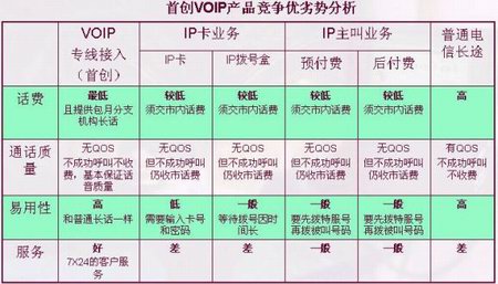 比業(yè)內(nèi)其他多種IP電話更具價格優(yōu)勢。每個長途呼叫無論是否建立成功,都不收取本地市話費用。對于國內(nèi)目前話務量集中的國際間通信,采用的資費標準相對其他運營商具有價格優(yōu)勢。對于企業(yè)的Intranet Call,由于企業(yè)間不產(chǎn)生話費,更能夠節(jié)省大量的話務開支。