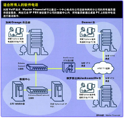 當(dāng)Master Financial決定采用VoIP時(shí),這家公司的確是下定決心。當(dāng)時(shí),該公司只有350名員工,人員規(guī)模僅相當(dāng)于Lehman這樣大企業(yè)的一家分公司。Master