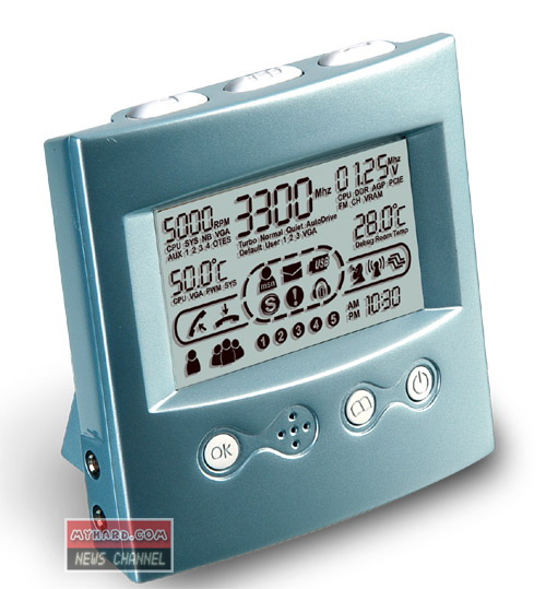 這個裝置,其實是一項早期工具的衍生產(chǎn)品。早在2004年,這個具有獨(dú)立顯示屏的小東西被開發(fā)出來,用以控制電腦的超頻設(shè)定并監(jiān)控系統(tǒng)的效能,F(xiàn)在這個在下周起于各大通路都買得到的新機(jī)種已納入Skype話務(wù)管理功能,使用者可直接把頭戴式耳機(jī)接到這個小時鐘上,one-touch輕輕一按,便可立即進(jìn)行接通電話、速簡撥號及電話會議。