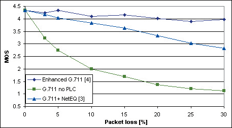為了處理數(shù)據(jù)包丟失問題,VoIP和VoFi系統(tǒng)采用了名為數(shù)據(jù)包丟失隱藏(packet loss concealment)的一種技術(shù)。這種技術(shù)并不找回丟失的數(shù)據(jù)包,只是把丟失數(shù)據(jù)包對(duì)語(yǔ)音產(chǎn)生的不利影響掩蓋起來。讓人驚訝的是,這種方法的效果非常好:在某些情況下最多允許可以丟失30%的數(shù)據(jù)包