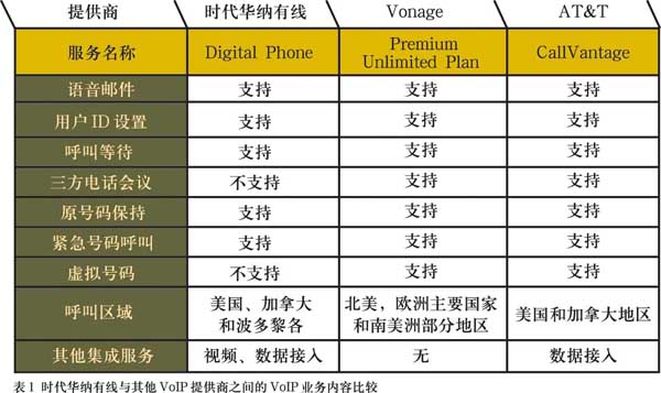 美國(guó)市場(chǎng)上的VoIP服務(wù)大多只需用戶支付一定數(shù)量的包月費(fèi)用,然后就可以無(wú)限制地享受北美地區(qū)的電話服務(wù),有線電視運(yùn)營(yíng)商的VoIP服務(wù)內(nèi)容也大致如此。使用