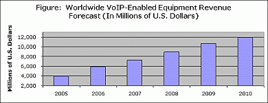 2006年11月?lián)y(tǒng)計(jì),全球VoIP設(shè)備銷售收入將從2005年的39.5億美元增長到2010年的119億美元,年度復(fù)合增長率為24.7%。如下圖所示。VoIP市場主要包括三個用戶群:用于企業(yè)的專用電話交換機(jī)(PBX),服務(wù)供應(yīng)商的基礎(chǔ)架構(gòu)以及住宅接入設(shè)備。