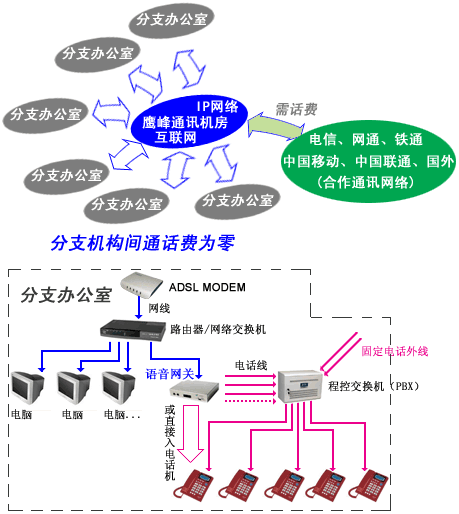 某跨國公司A(因涉及客戶商業(yè)保密原因,故隱去真實名稱),在中國目前共有40多家分公司及辦事機構(gòu)。其不同分公司及辦事機構(gòu)之間需要大量的語音通信支持業(yè)務(wù)往來,話音通信主要是通過傳統(tǒng)的電話方式,即不同機構(gòu)將使用的不同類型的PBX(數(shù)字程控交換機)接入本地電話公網(wǎng),通過電信公司的固定長途網(wǎng)進行通話。與此同時, A公司各不同機構(gòu)都有與遍布各地的用戶經(jīng)常溝通的需求,此種通信方式使得整個A公司要支付巨額電話費用。更重要的是,A公司目前此種通信方式不便于整個語音通信系統(tǒng)的統(tǒng)一管理及維護,更不利于整個公司以一個統(tǒng)一的公司形象對外。