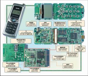 Wi-Fi功能由科勝訊(Conexant)的Prism3 802.11b芯片組完成,是一款傳統(tǒng)的專業(yè)方案。科勝訊通過收購GlobeSpan-Virata得到Prism3 802.11b,而GlobeSpan-Virata之前購買了Intersil的Wi-Fi芯片組業(yè)務(wù),所以Prism3組件仍打著Intersil的標(biāo)識。以目前的標(biāo)準(zhǔn)看,Prism3總體Wi-Fi方案的集成度不算太高。ISL3871基帶/媒體存取控制芯片與ISL3684收發(fā)器相連,一款獨(dú)立的壓控振蕩器和一個RF功放(ISL3084和ISL3984)共同支持ISL3684完成工作。適中的256KB SRAM和128KB閃存滿足該設(shè)計中802.11b部分對存儲器的需要。