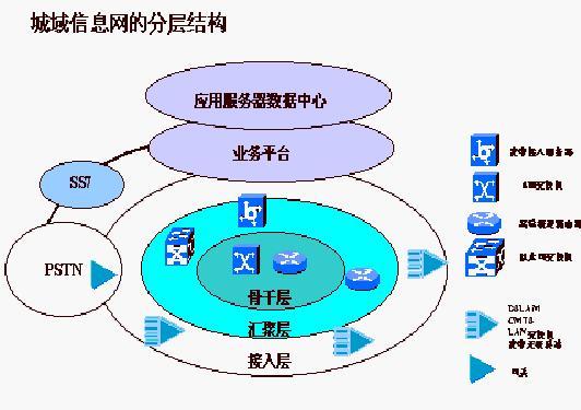 從網(wǎng)絡(luò)的層次結(jié)構(gòu)看,城域信息網(wǎng)由骨干層、匯聚層和接入層、業(yè)務(wù)平臺(tái)和管理平臺(tái)幾部分組成,Sinov-100I話機(jī)屬于接入層設(shè)備。