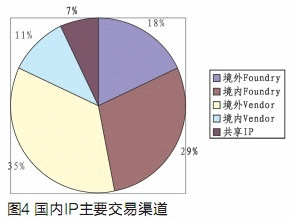 而境外的IP Vendor因?yàn)槟軌蛱峁┚邆滟|(zhì)量優(yōu)勢和技術(shù)優(yōu)勢的IP核,也成為主要的IP交易渠道之一。具體的數(shù)據(jù)參見圖4。