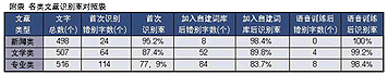 然后,我們又利用聲龍?zhí)赜械脑~匯生成器,讓聲龍自行辨別文章中的詞匯并自動(dòng)添加到自建詞庫(kù)中,并針對(duì)其中的一些英文單詞或縮寫(xiě)對(duì)聲龍進(jìn)行語(yǔ)音識(shí)別訓(xùn)練,之后我們?cè)俅武浫胪黄獙I(yè)文章。結(jié)果非常令人滿意,從附表可以看出識(shí)別率有了明顯提高。最后,我們又錄入了另一篇相同領(lǐng)域的專業(yè)文章中的一段(512字)。首次錄入的錯(cuò)別字有46個(gè),識(shí)別正確率為91%。與第一篇文章相比,識(shí)別率有了明顯提高。
