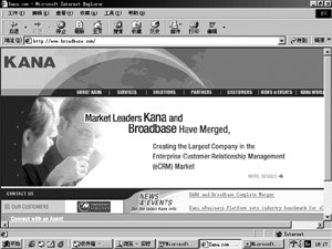 Kana是美國(guó)在線服務(wù)領(lǐng)域的知名公司,其eCRM軟件在客戶關(guān)系管理領(lǐng)域極具代表性。Kana公司剛開(kāi)始只提供電子郵件響應(yīng)管理技術(shù),但是通過(guò)一系列的收購(gòu)舉措,Kana已經(jīng)可以提供端到端的客戶服務(wù)解決方案。最近,Kana并購(gòu)了美國(guó)Broadbase公司,成為在線客戶服務(wù)領(lǐng)域的“巨頭”。該公司的旗艦級(jí)產(chǎn)品主要是針對(duì)Email回復(fù)的客戶服務(wù)系統(tǒng),Kana的Email客戶服務(wù)軟件被Yahoo!和AOL等著名的網(wǎng)絡(luò)公司采用。