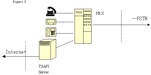 2、TSAPI技術(shù)標準:由Novell公司開發(fā)。它將程控交換機或中央電話系統(tǒng)與Netware網(wǎng)絡集成在一起?梢詫崿F(xiàn)呼叫轉(zhuǎn)移,交互式語音(IVR)和自動呼叫分配(ACD)等功能。支持包括Windows各種版本、OS/2和Unix等目前主要操作系統(tǒng)。不同于TAPI ,TSAPI在計算機和桌面之間建立一個邏輯的連接,通過這些連接在任一端的TSAPI應用就可以完成呼叫控制。由于TSAPI主要為Netware網(wǎng)操作系統(tǒng)增加電話服務,不在每個電話和PC之間建立直接的連接,而是由一個電話服務器Netware可加載模塊(NLM)、一個電話服務器API(TSAPI)、一個電話服務器庫和一個電話客戶庫組組成在服務器電話系統(tǒng)間建立的連接,因此這個連接也稱為PBX-To-Server連接。電話服務器 NLM是負責 PBX和 Netware服務器間傳送信息的。電話服務器 API是為運行于服務器上的應用提供電話服務器API。三方連接在客戶--服務器組網(wǎng)中比單方連接有更大的靈活性。網(wǎng)上的每個用戶都可迅速地通過現(xiàn)有的LAN基礎結(jié)構(gòu)撥入PBX。對其他服務的接入,如主機或終端仿真、傳真、E-mail等,都可以通過CTI接口獲得,只要這些業(yè)務已經(jīng)存在于網(wǎng)上。結(jié)構(gòu)如圖: