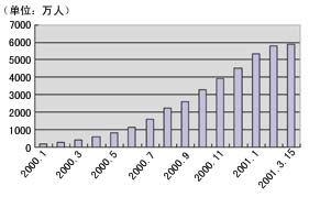 從使用即時通訊的用戶數(shù)目來看,其增長速度十分驚人,到2001年3月份,其總量達(dá)到了6000萬人。這主要得益于中國這兩年互聯(lián)網(wǎng)發(fā)展速度迅猛,而且這還與人們對于即時通訊的需求在增加有關(guān),很多人在網(wǎng)上有兩個甚至三個或更多的OICQ號碼以便與不同的伙伴聯(lián)系。