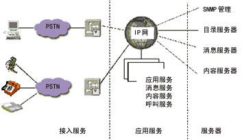數(shù)據(jù)交換技術(shù)的發(fā)展使IP逐漸成為數(shù)字、語音等各種信息服務(wù)的網(wǎng)絡(luò)基礎(chǔ)標(biāo)準(zhǔn)。各種基于IP傳送話音、視頻的技術(shù)標(biāo)準(zhǔn)(如SGCP、VoIP等)也不斷提出并迅速統(tǒng)一。那么,基于IP的統(tǒng)一消息方案由兩部分組成:通用信息接收箱功能模塊和通用連接手段。通用信息接收箱功能模塊用于把所有形式的消息,如傳真、話音郵件、電子郵件等集成到一個(gè)IP網(wǎng)上的通用接收箱,用來提供給用戶一個(gè)公共平臺(tái),來管理所有的消息。通用連接手段允許用戶通過電話網(wǎng)、DSL網(wǎng)、有線電視網(wǎng)和無線網(wǎng),使用電話、PC、電子郵件客戶設(shè)備、Web瀏覽器、無線手持設(shè)備和PDA訪問通用信息接收箱。