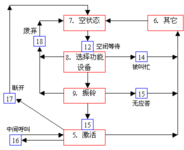 在ITU-T建議中提出了基本呼叫狀態(tài)模型(BCSM),由它完成呼叫/業(yè)務邏輯的處理,包括: