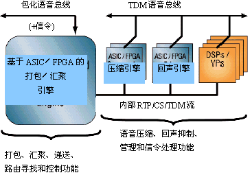 由于ASIC/FPGA技術(shù)是一種定制設(shè)計技術(shù),不會輕易更改,主要是因為從設(shè)計到投放市場需要不短的周期。這使得最適合用ASIC定做的是成熟的、充分定義的、反復(fù)使用不會頻繁更改的功能。在VoP網(wǎng)關(guān)中使用ASIC的目的是實現(xiàn)打包、回聲抑制和壓縮功能,減輕DSP/RISC的負(fù)荷,而不是替換它們。
