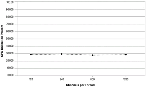 基于1200通道, Dialogic工程師測試了每個線程不同的通道數(shù)(例如每個線程120端口和240端口). 測試結(jié)果表明,