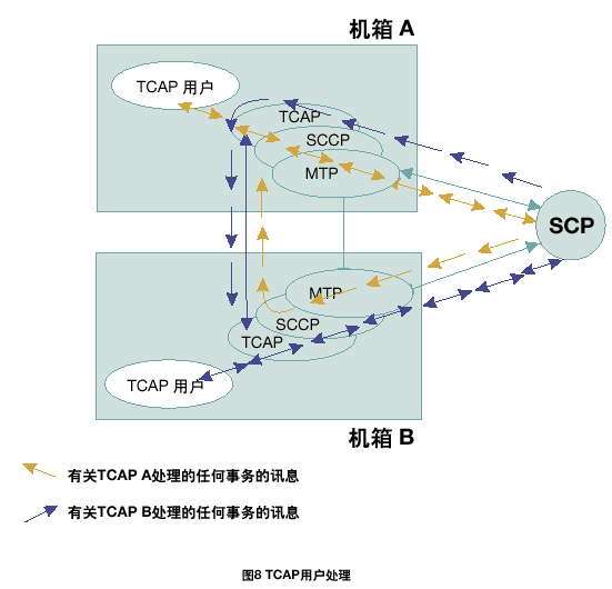 每個TCAP將所有接收的信息傳遞到同機箱中的TCAP用戶任務中。根據(jù)每一個TCAP中不同的應用層或用戶,將TCAP層的本地應用程序發(fā)送的傳送會話和組件原語傳遞給正確的TCAP。在雙系統(tǒng)環(huán)境中,接收訊息可以在任何MTP和SCCP層上共享;因此,一個TCAP層接收由其它TCAP處理的應用在激活事務上的TCAP訊息是可能的。