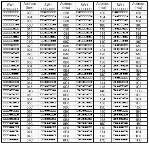 不同的開關配置對應不同的 I/O 地址,如圖2.2所示。