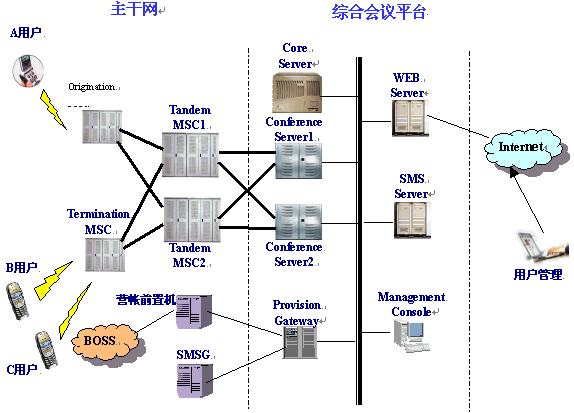 概述 。。今年來(lái),隨著電話會(huì)議技術(shù)的不斷成熟,基于計(jì)算機(jī)平臺(tái)的會(huì)議型業(yè)務(wù)應(yīng)用越來(lái)越活躍,其中電話會(huì)議系統(tǒng)、QQ聊天系統(tǒng)以及BGM便是主要熱門(mén)應(yīng)用。 。。交互式電話會(huì)議系統(tǒng)是一個(gè)真正由用戶自己管理的智能型交互式電話會(huì)議系統(tǒng),是目前國(guó)際上流行的一種召開(kāi)會(huì)議的新形式?蛻衾盟梢噪S時(shí)隨地召開(kāi)本市、國(guó)內(nèi)或國(guó)際的電話會(huì)議,人們無(wú)論身在何處,只需撥打一個(gè)事先約定的電話會(huì)議號(hào)碼和密碼,即可參加會(huì)議,并且能自由組會(huì),同時(shí)發(fā)言,自由交談?梢酝瑫r(shí)招開(kāi)數(shù)十方,適用于商務(wù)研討、緊急討論會(huì)、信息匯總會(huì)、親友聚會(huì)等各種各樣的會(huì)議。